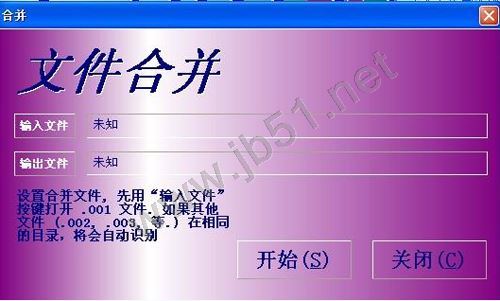 选择“文件合并”,道理一样,需将分割完毕后的文件放在一个目录下,点击“输入文件”(只需要点击第一个文件即可)和“输出文件”选择,然后合并。