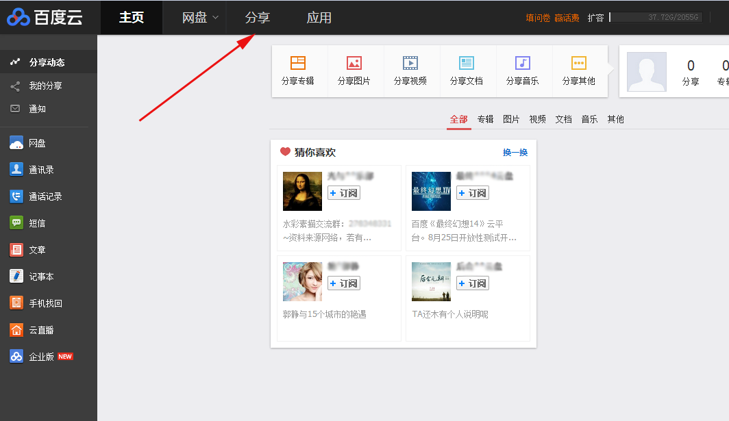 步骤一:登录你的百度云网盘,点击“分享”