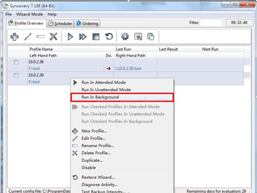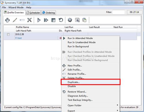 我们肯定想进行多台机器的同时一键式的拷贝,所以这里可以再次添加其他机器的目标,比如我们也想在10.0.2.39机器上复制本机的F盘中test的数据,这样可以再次建立一个备份任务,快捷的复制任务:右键10.0.2.38这个任务在弹出的菜单中选择Duplicate,命名任务名称为10.0.2.39,如图所示。编辑任务只需要修改Right-Hand Side就可以了如图8所示。这样就出现两条任务了,如图9所示。