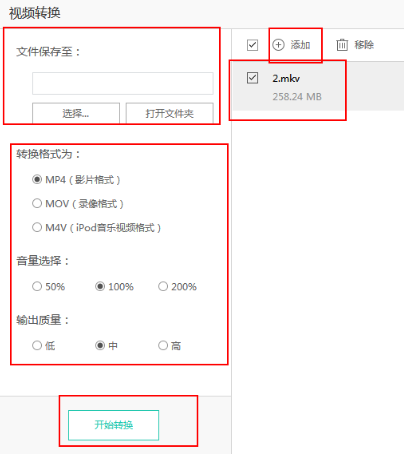 3、之后再设置一下转换后视频的存储位置、转换格式、输出质量等,设置完毕后点击“开始转换”就可以了。