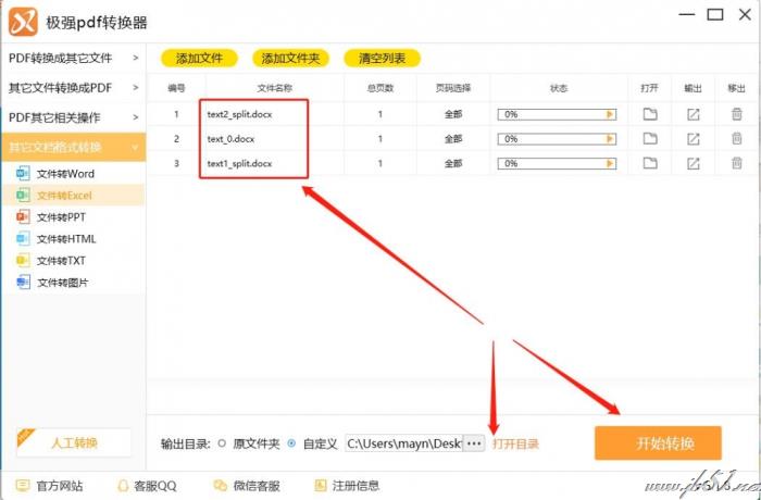 4.将文件添加进来后,如果文件数量多可以按住鼠标左键对文件进行拖拽排序,确定好后,点击界面下方的“打开目录”设置文件转换后的保存路径,设置好后点击“开始转换”