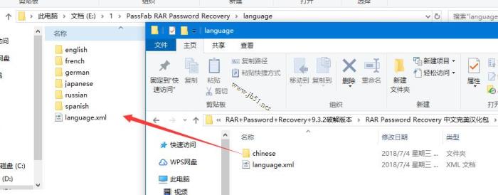 1、将“RAR Password Recovery 中文完美汉化包”下的“language”中的文件拖入到安装目录下"E:\PassFab RAR Password Recovery\language”替换源文件