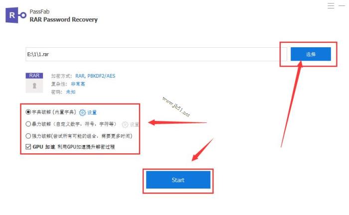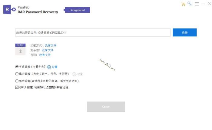 2、选择需要解密的加密文件,选择一种解密的方式,点击“start”