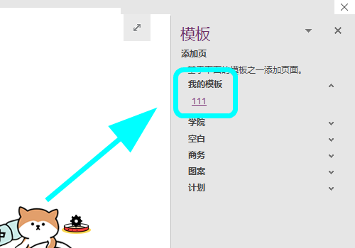 4、在笔记窗口右侧弹出页面模板管理菜单,点击【我的模板】;
