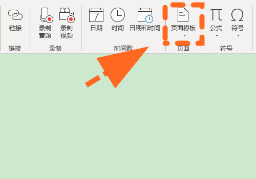 3、进入插入选项菜单,点击【页面模板】并在下拉菜单中点击【页面模板】;
