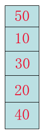 此时数组值为: 10,20,50,40,60,至此完成一次排序。