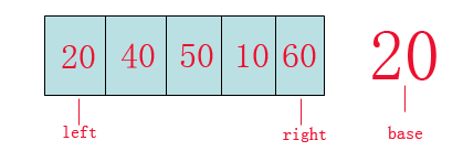 第一步:首先我们从数组的left位置取出该数(20)作为基准(base)参照物。