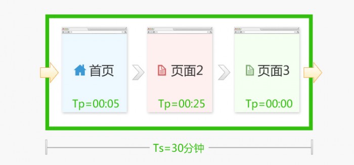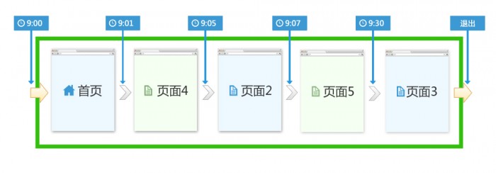 让我们用下图来表示各个页面网站分析工具统计的停留时间: