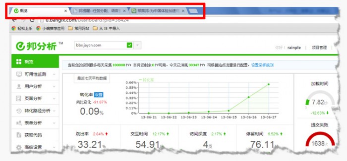 请一定要问清楚你的网站分析服务提供商,他们采取了上两种方式中的哪一种来计算多Tab(标签页面)浏览时的时间和访问过程。