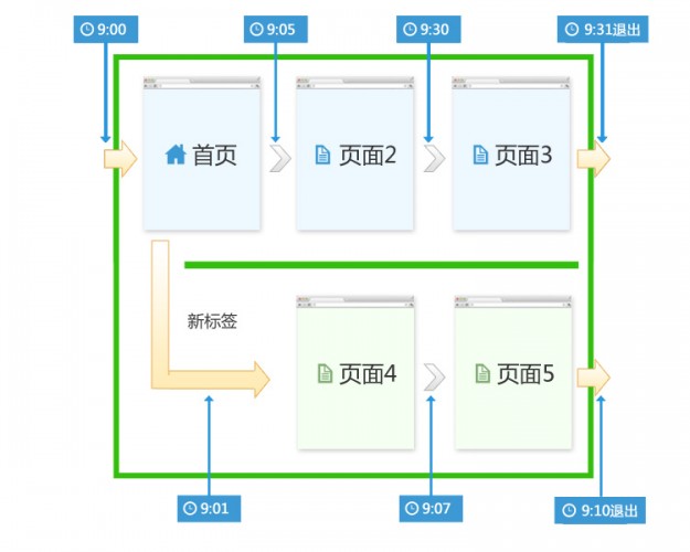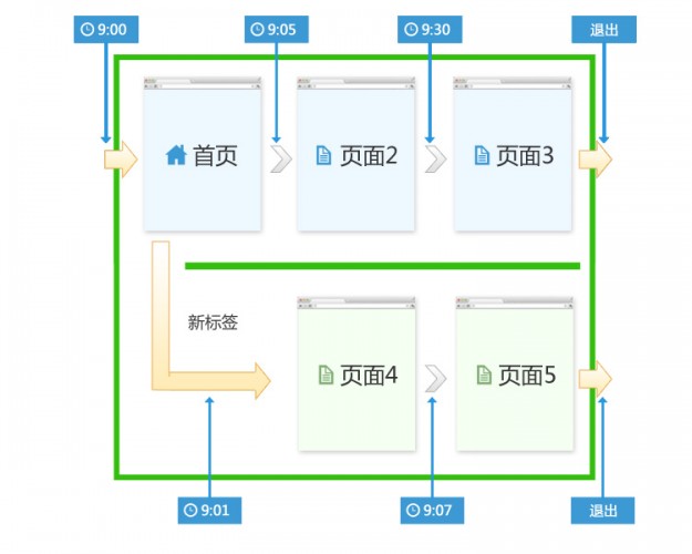 下图是一个普遍的用户浏览网站场景,通过这个场景我们能够理解多标签页面浏览带来的影响……
