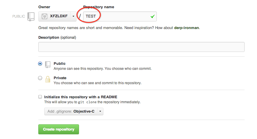 2.然后跳转下一个页面,填写repository name,如:TEST,在Add .gitgore一项根据你所使用语言选择,其他的默认,然后creat repository