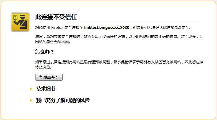 在HTTPS握手的第四步中,如果站点的证书是不受信任的,会显示出现下面确认界面,确认了网站的真实性。另外第六和八步,使用客户端私钥加密解密,保证了数据传输的安全。