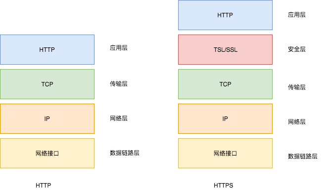 下面是常见的TCP/IP分层协议,分为安全与非安全版本。
