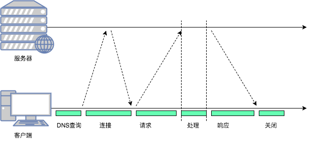 从上面的图中可以看出,一次正常的交互需要经过DNS查询、握手、挥手等与数据传输无关的操作。如果每次传输的数据都很少,那么这种操作所占用的比例就会增加,这将大大降低HTTP的性能。由于HTTP是建立在TCP连接的基础上的,所以握手的过程是对HTTP不可见的,HTTP只能看到建立连接发生了时延。三次握手的过程这里不做赘述,感兴趣的请查阅相关资料。