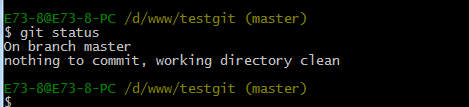现在我们已经提交了一个readme.txt文件了,我们下面可以通过命令git status来查看是否还有文件未提交,如下: