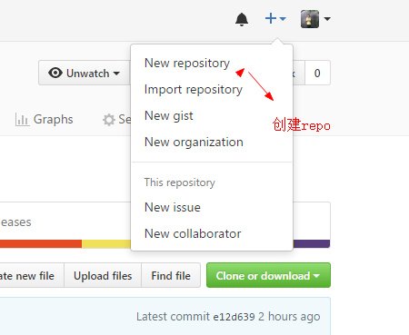 登陆之后,点击页面右上角的加号,选择New repository: