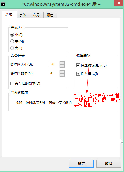 选择快速插入模式,在Cmd 窗口,按右键,就能实现粘贴了。