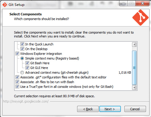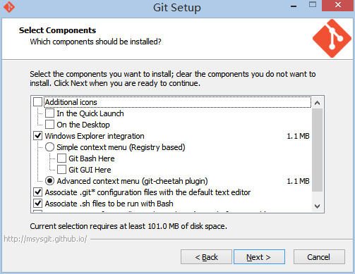 这是对上图的解释,不需要了解请直接跳过 Git的默认设置下,出于安全考虑,只有在Git Bash中才能进行Git的相关操作。按照上图进行的选择,将会使得Git安装程序在系统PATH中加入Git的相关路径,使得你可以在CMD界面下调用Git,不用打开Git Bash了。