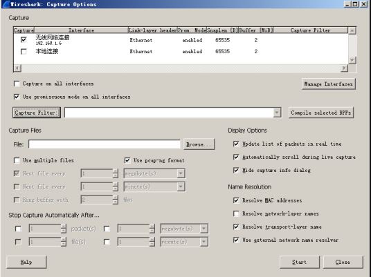 点击"Capture Filter",此处选择的是"HTTP TCP port(80)",选择后点击上图的"Start"开始抓包。