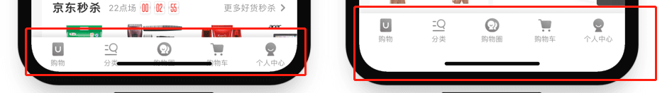 iPhone X 对于微信小程序的tabbar来说,会被底部小黑条覆盖,需要处理,大概思路是,得到手机型号、分别判断样式,即可,如下: