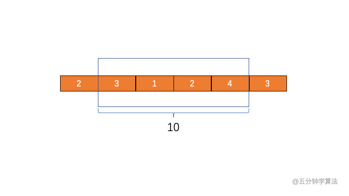 3. 滑动窗口右端 R 继续移动,停止于第四个元素 4,此时和位 10 ,但最优长度仍然为 4