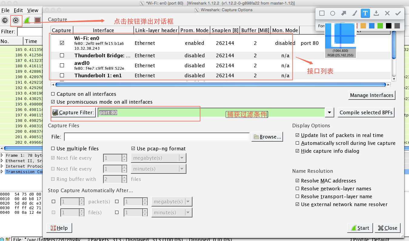以下的介绍都是以mac下的wireshark 1.12.2版本为基础。