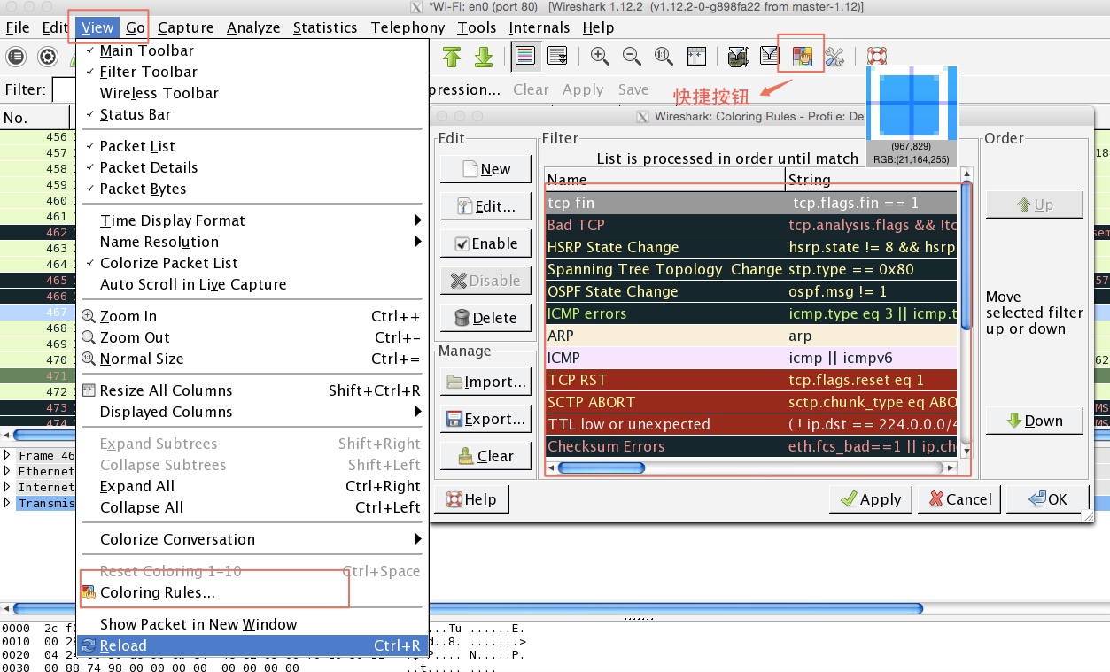 wireshark使用着色规则