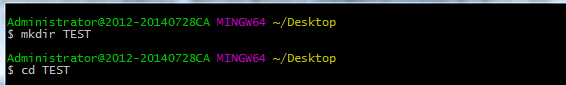 现在我通过命令行在桌面新建一个TEST文件夹(你也可以在其他任何地方创建这个文件夹),并且进入这个文件夹