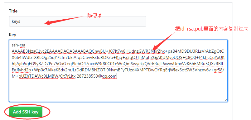 第六步:登录Github,找到右上角的图标,打开点进里面的Settings,再选中里面的SSH and GPG KEYS,点击右上角的New SSH key,然后Title里面随便填,再把刚才id_rsa.pub里面的内容复制到Title下面的Key内容框里面,最后点击Add SSH key,这样就完成了SSH Key的加密。具体步骤也可看下面: