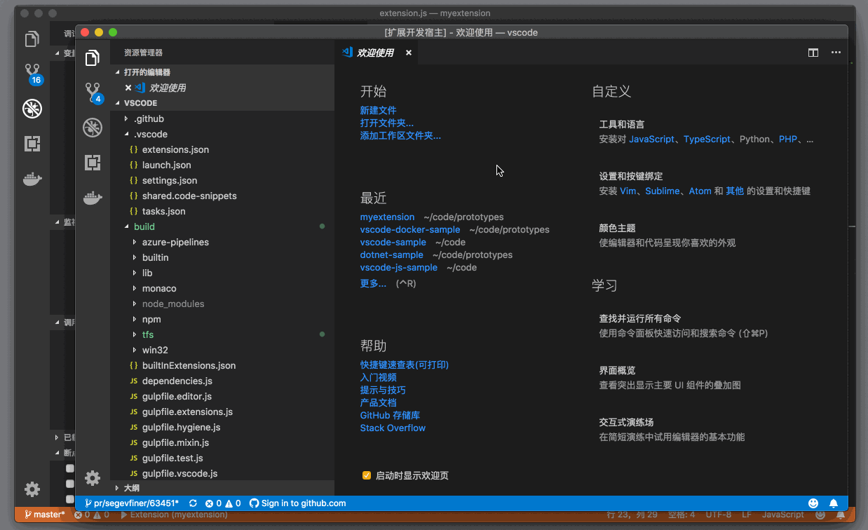 VSCode 运行插件,现在我们对这个插件的实现方式和注册方式已经有了了解,下面就到了运行和调试代码的时候了。VS Code 的插件代码脚手架已经为我们提供了 launch.json ,所以我们只需要按下 F5 即可启动代码。