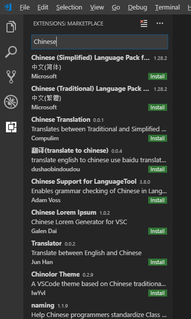 点击左侧边栏最下面的插件,搜索