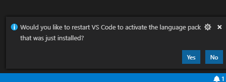 此时如果有弹窗出现提示下载中文包直接下载重启VS即可,如果没有提示则需要我们手动下载语言包