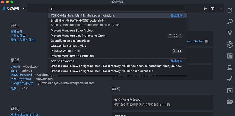 在继续看文章之前记住记住打开命令面板的快捷键Cmd+shift+P(win下是Ctrl+shift+p)