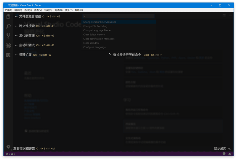 在命令面板中你可以输入命令进行搜索(中英文都可以),然后执行。