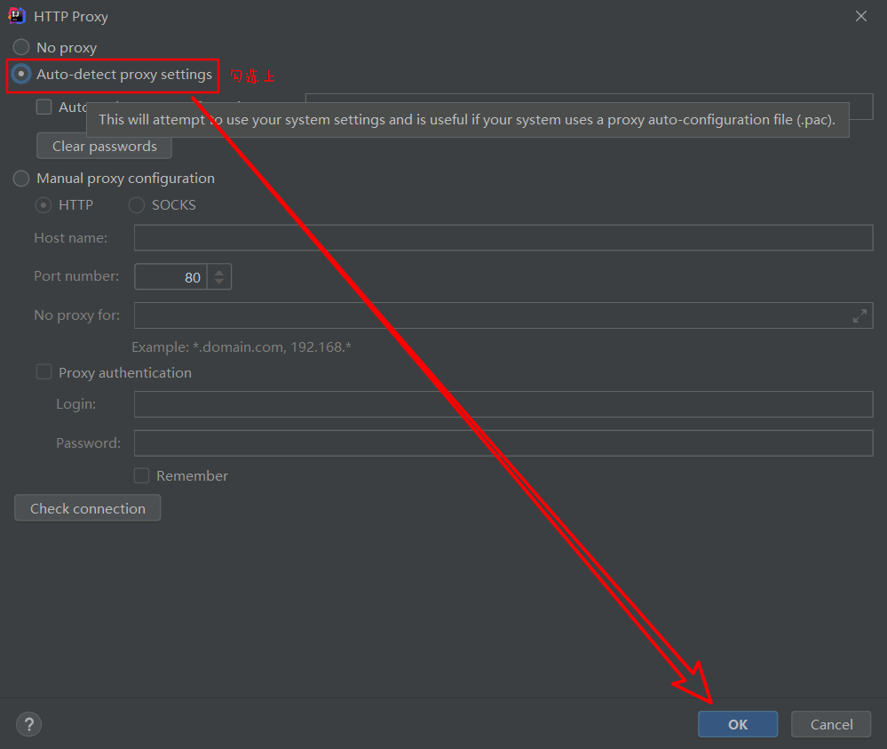 勾选上第二项Auto-detect proxy settings