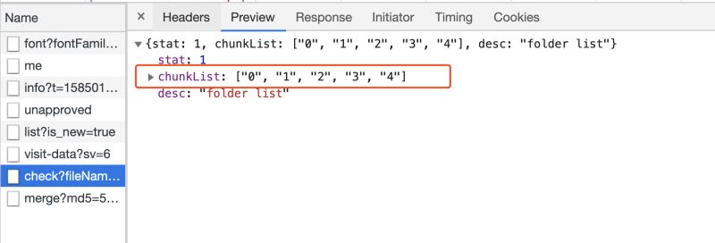 调用 Promise.all 并发上传所有的切片,将切片序号、切片文件、文件 MD5 传给后台。