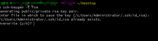 即可生成秘钥对,默认路径在C:\Users\Administrator.ssh,图中也已经指出了