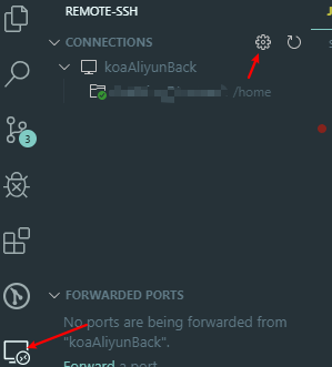 点击VSCode侧边栏的小屏幕标志再点击齿轮配置你的远程信息