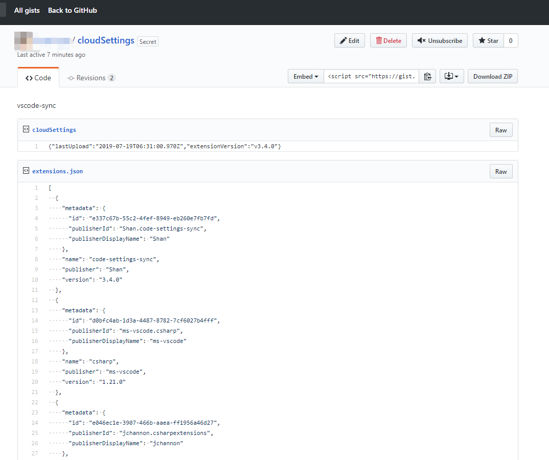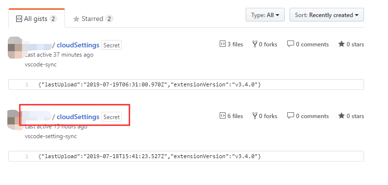 你还可以在你的Gist仓库中查看,看看Settings Sync上传了什么