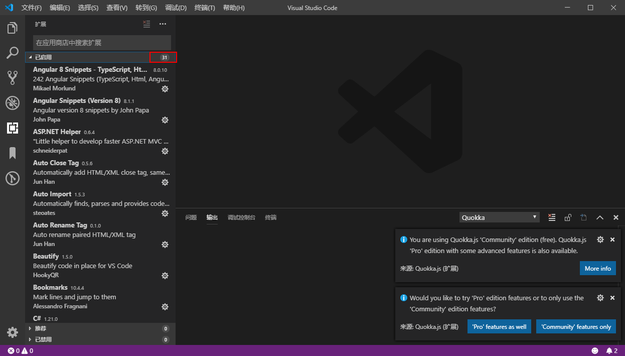 重启后看到同步到了我最常使用的这个Gist配置。一共有31个扩展(虽然很多,但VSCode使用依然顺滑)。