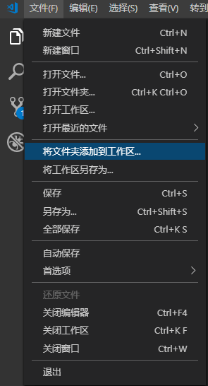 点击 菜单栏(文件)—> 将文件夹添加到工作区