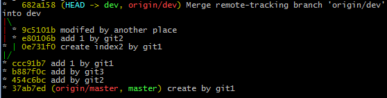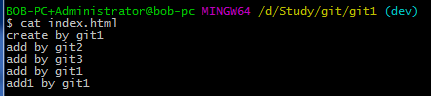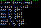 git1拉取最新代码后,在index中添加“add by git1 add1 by git1”,如下: