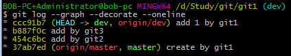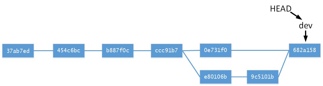 根据提交历史,可以看出图中所有分支合并都采用merge的方式,具体merge是怎么操作的,可以阅读下边文章。