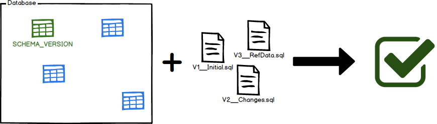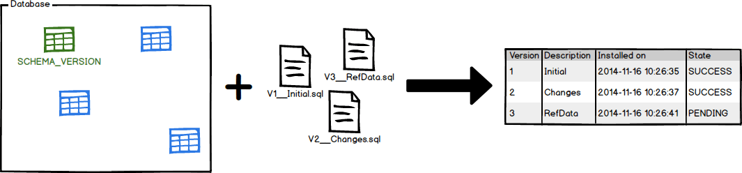 Flyway对数据库进行版本管理主要由Metadata表和6种命令完成,Metadata主要用于记录元数据,每种命令功能和解决的问题范围不一样,以下分别对metadata表和这些命令进行阐述,其中的示意图都来自Flyway的官方文档。