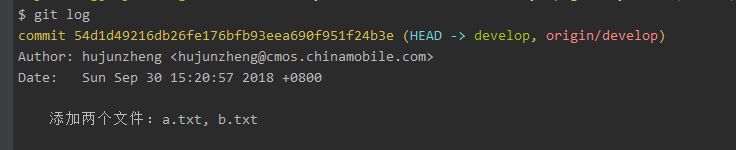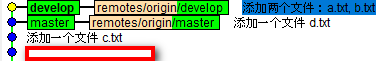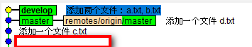 6、可以看到master上之后又1条提交记录了,而develop上还有3个提交记录