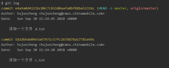 分别添加c.txt 和 d.txt两个文件,分别进行add、commit、push