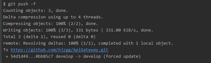 还是要通过 git push -f 命令将合并的commit结果提交的远程仓库中。