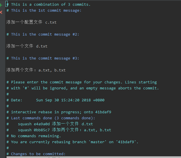 squash:将该commit和前一个commit合并(缩写:s)