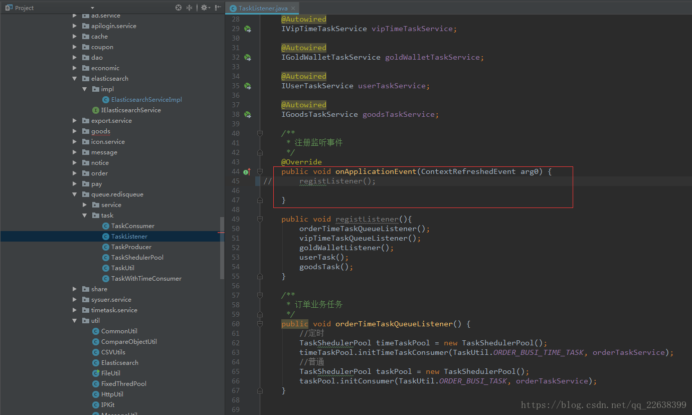 然后~~我就把本地的监听器那一段代码注释掉,方便测试人员在测试服上进行测试。注释掉代码如下图: