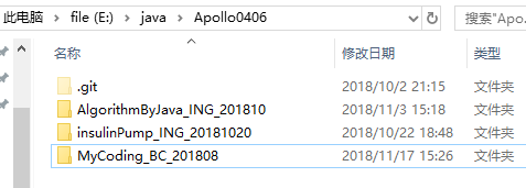 例如:Apollo0406是存放所有仓库的文件夹名称。其下是3个已经克隆到本地的远程仓库:
